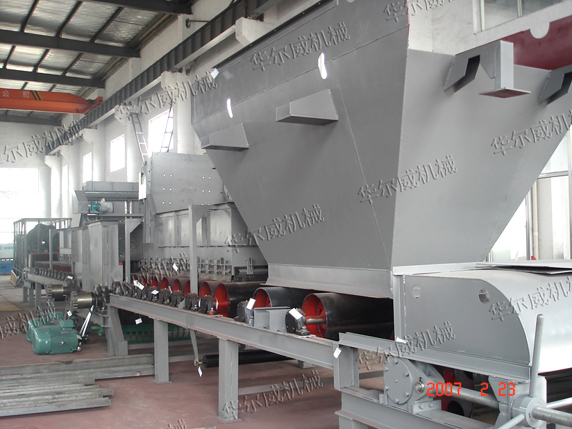 單聯(lián)、雙聯(lián)給料機是由驅動裝置、皮帶機架、傳動滾筒、承載滾筒、尾滾筒、雙側給料漏斗、承壓導槽、雙側防偏立輥、環(huán)形膠帶、尾部螺旋拉緊裝置、電動閘門或手動棒插閘、電氣控制系統(tǒng)等組成,具有以下優(yōu)點: