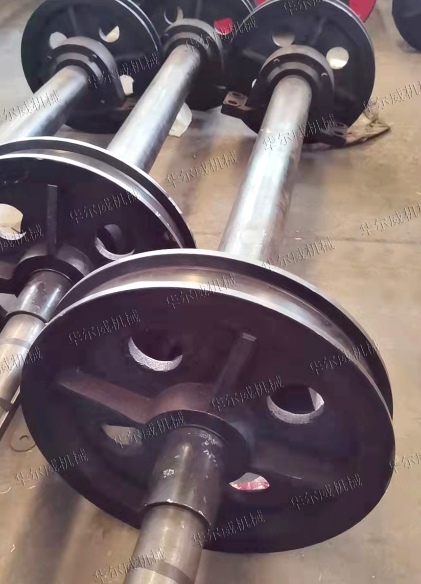 卸料車行走輪通常由車輪、軸、軸承座、密封件等共同組成。卸料車行走機構是由4個車輪及兩根通軸組成的兩個車輪對。卸料車行走輪為鑄鋼件,表面淬火處理。車輪內(nèi)側或兩側的輪緣與鋼軌之間有一定的間隙,能保證車輪與軌道之間不出現(xiàn)啃軌現(xiàn)象。